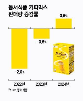 4일 식품업계에 따르면 국내 커피믹스 시장 점유율 1위인 동서식품의 지난해 커피믹스 판매량이 전년 대비 0.5% 증가했다. 이는 '맥심' 모카골드·화이트골드 등의 판매량을 모두 더한 수치다.