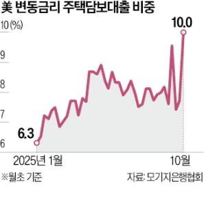 3일(현지시간) 모기지은행협회(MBA)에 따르면 지난달 첫째주 기준 주택 구입용 모기지 신청의 약 10%가 변동금리 모기지였다. 이는 2023년 이후 가장 높은 비중이다. 모기지 금리가 사상 최저 수준에 근접한 2021년 초에는 ARM 비중이 3% 미만이었다. 올해 초(6.3%)와 비교해도 크게 뛰었다.