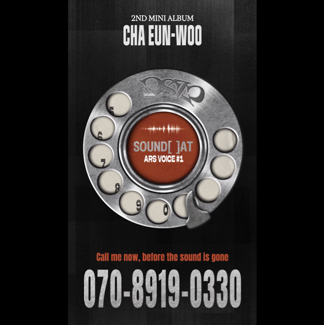 차은우는 4일 공식 계정을 통해 “Call me now, before the sound is gone(소리가 사라지기 전에 지금 전화해)”라는 문구와 함께 전화기 다이얼 이미지, 그리고 ‘070-8919-0330’ 번호가 적힌 티저 이미지를 공개했다.