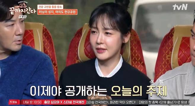 '끝까지 간다'는 '찾아가는 건강버스'를 내세운 리얼 건강 로드 버라이어티로 성유리는 "요즘 흐름과 잘 어울리는 프로그램이다. 요즘 건강하게 젊게 또 오래 사는 게 모든 사람들의 목표 아닌가"라며 대국민 프로젝트 '끝까지 간다'를 소개했다.