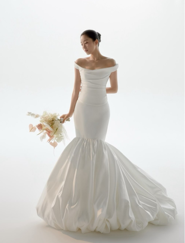 4일 함은정은 자신의 SNS에 순백의 웨딩드레스 화보를 공개했다. 사진 속 그는 단아한 오프숄더 드레스와 풍성한 실루엣의 머메이드 드레스를 입고, 꽃을 품은 듯한 눈빛으로 서 있다.