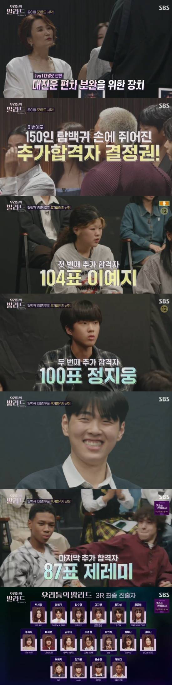 '우리들의 발라드'에서 이예지를 비롯해 추가 합격자가 4명이 나왔다.