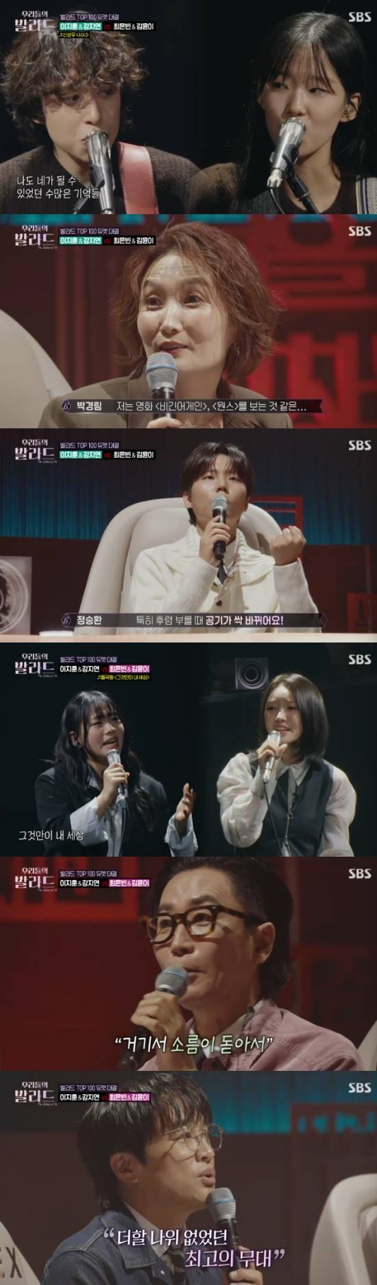 4일 방송된 SBS 예능 프로그램 '우리들의 발라드'에서는 단 한 팀만이 살아남는 3라운드 '듀엣 경연'이 펼쳐졌다.