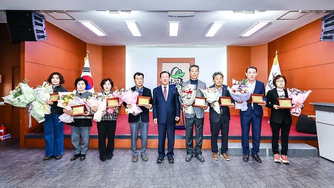 이날 수상자는 △구영자(가야읍 가야어울림협동조합 사무장) △김선희(칠원읍) △김형철(칠원읍 모범운전자) △황명선(함안면 신교이장) △김홍식(군북면 함안수박축제위원회 사무국장) △전시원(법수면 한국여성농업인함안군연합회 법수면 회장) △강수현(대산면 신등이장) △이효성(칠서면 회문이장) △이종국(칠북면 성호이장) △박성하(산인면 체육회 이사) △정수분(여항면 여항산마을문화센터 사무장) 등 11명이다.