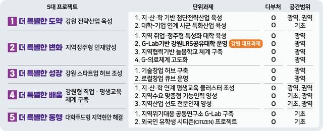 강원RISE는 지자체와 대학, 기업, 연구기관이 협력해 대학이 단순한 교육기관을 넘어 지역 성장의 동력으로 작동하는 ‘대학도시 생태계’를 도 전역으로 확산하는 것을 목표로 한다. 이를 위해 △산업혁신 △인재양성 △창업생태계 △평생교육 △글로벌 협력 등 5대 핵심 프로젝트와 13개 단위과제를 중심으로 통합적 혁신을 추진 중이다. 특히 교육부 평가에서 우수한 성과를 인정받아 총 85억원 규모의 인센티브를 포함해 연간 약 1000억원의 예산을 확보했다.