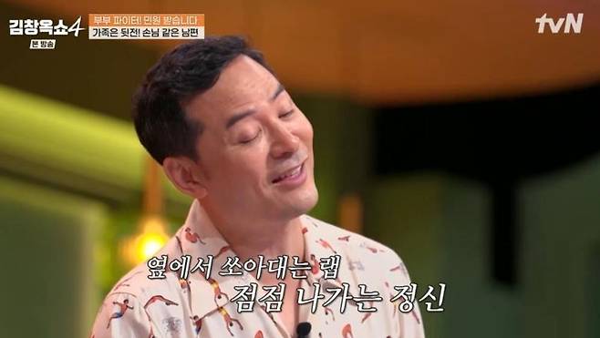 하지만 이를 듣던 김창옥은 "강연을 많이 하고 많은 분을 봤지만 남편분처럼 슬픈 눈은 처음 본다. 옆에서는 계속 랩을 하시고 남편분은 (넋이 나가 있다)"라고 팩폭해 폭소를 유발했다.