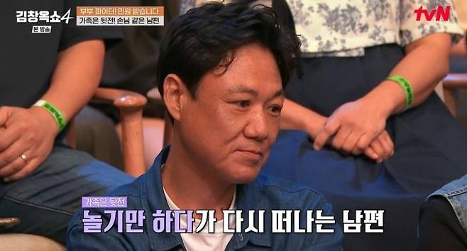 또 아내는 "경미하지만 교통사고가 났었다. 두달 반 동안 한번도 안 물어봤다. 오늘 '김창옥쇼4' 오면서 물어볼까봐 조마조마했는데 아무 말도 없더라"라고 불만을 토로했다. 아내는 "광주에 다른 집이 있나보다 싶다. 저도 집착하는 스타일은 아니다"라고 전했다.