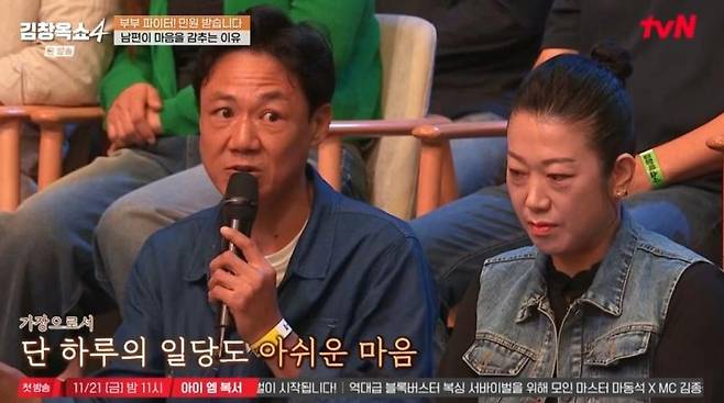 4일 방송된 tvN '김창옥쇼4' 5회에서는 '부부 파이터! 민원 받습니다'라는 주제로 다양한 사연자들의 고민이 전파를 탔다.