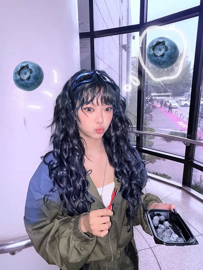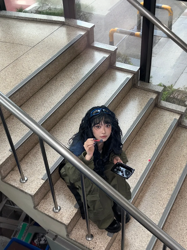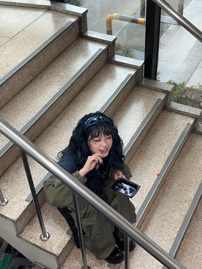 르세라핌 홍은채, 계단서 블루베리 먹방?...'요즘 MZ감성' 제대로 저격