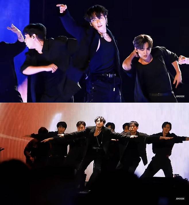 올블랙 시스루 룩을 입은 정국은 섹시하면서도 카리스마 넘치는 분위기로 시선을 압도했다. 이어 방탄소년단 유닛곡 ‘자메뷰(Jamais Vu)’를 감미로운 보이스로 부르며 공연장의 분위기를 순식간에 바꿨다. 팬들은 “이게 진짜 라이브다”, “음원보다 더 완벽하다”, “현 세대 아이돌 중 최고다”라며 열광적인 반응을 보였다.