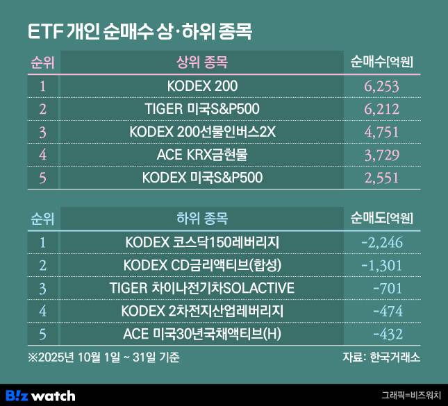 4일 ETF체크에 따르면 개인 투자자의 순매수 금액이 가장 많았던 ETF는 삼성운용의 KODEX 200(6253억원 매수)이다. 같은 운용사의 KODEX 200선물인버스2X역시 4751억원 순매수한 것으로 나타났다. 개인들이 코스피 상승과 하락, 양방향으로 베팅한 것이다.