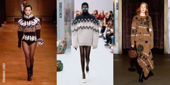 이번 가을과 겨울 시즌 런웨이에서는 북유럽 감성을 현대적으로 풀어낸 노르딕 니트가 두드러졌다. 아크네스튜디오는 모헤어 질감과 과장된 실루엣으로 미래적인 무드를 더했고, 몬세는 클래식한 노르딕 패턴을 그래픽적으로 재해석했다. 베로니크 뢰로이는 전통적인 노르딕무드를 볼드하고 관능적으로 풀어냈다. 알투자라처럼 셔츠 위에 겹쳐 입고 슬랙스나 미디스커트와 매치하면 클래식하면서도 세련된 감도의 오피스 룩을 완성할 수 있다.
