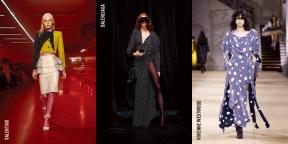 도트는 단순한 패턴이 아니라 리듬을 표현하는 장치로 등장했다. 비비안웨스트우드는 해체적인 실루엣 위로 과장된 도트를 흩뿌려 자유분방한 무드를 연출했고, 발렌시아가는 미세한 도트를 어두운 컬러와 배치해 관능적인 드레스 룩을 완성했다. 발렌티노는 재킷 위에 도트 스카프를 매치한 것 같은 스타일링으로 지루할 수 있는 룩에 유연함을 더했다. 작고 규칙적인 점 하나가 룩 전체의 무드를 바꾸는 만큼 이번 시즌엔 도트를 과감히 확장해보자. 클래식한 블라우스에 진이나 슬랙스를 매치하거나, 크기와 간격이 다른 도트를 믹스해 예상 밖의 재미를 더하는 식으로.