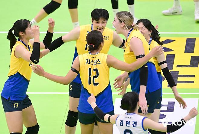 여자 프로배구 IBK기업은행이 현대건설에 한 점도 얻지 못하고 패했다.