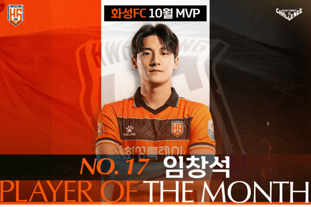 화성 FC의 해결사 임창석 선수가 팬 투표를 통해 2025시즌 10월 월간 MVP로 선정됐다.