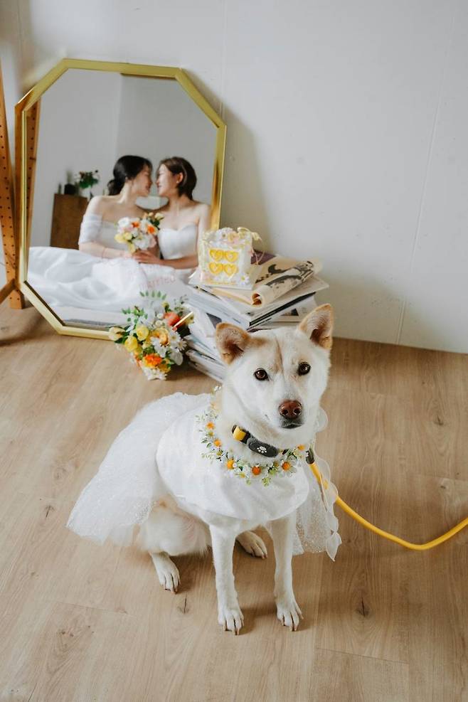 | ▲ 윤재은, 예정민 커플과 그들의 반려견 감귤이의 웨딩사진. |