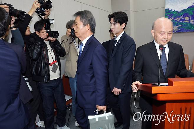 현재 채해병 특검 수사를 받고 있는 김용원 국가인권위원회(인권위) 상임위원이 국회 운영위원회(운영위) 국정감사장에서 단체 증인 선서를 거부하고 개별 선서를 주장하다 10분여 만에 퇴장당했다.