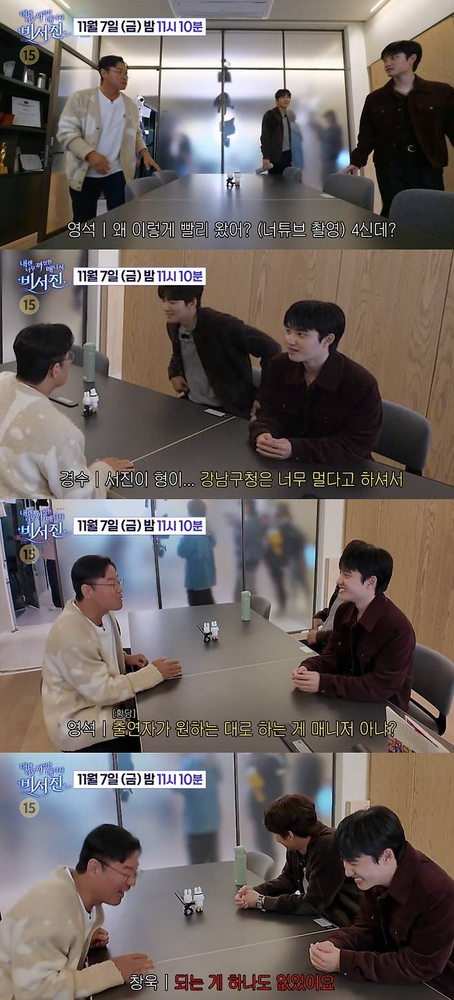 "매니저는 출연자가 원하는 대로 하는 게 매니저 아니냐"라며 황당해하는 나 PD에게 지창욱은 "저희가 하루종일 맘대로 하고 싶은 게 있어도 되는 게 하나도 없었다"고 폭로해 웃음을 안겼다.