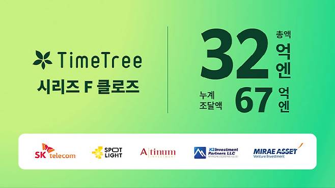 글로벌 일정 공유 플랫폼 타임트리(TimeTree)가 한국 최대 이통사 SK텔레콤을 리드 투자가로 하는 시리즈 F라운드를 마감했다고 5일 밝혔다.