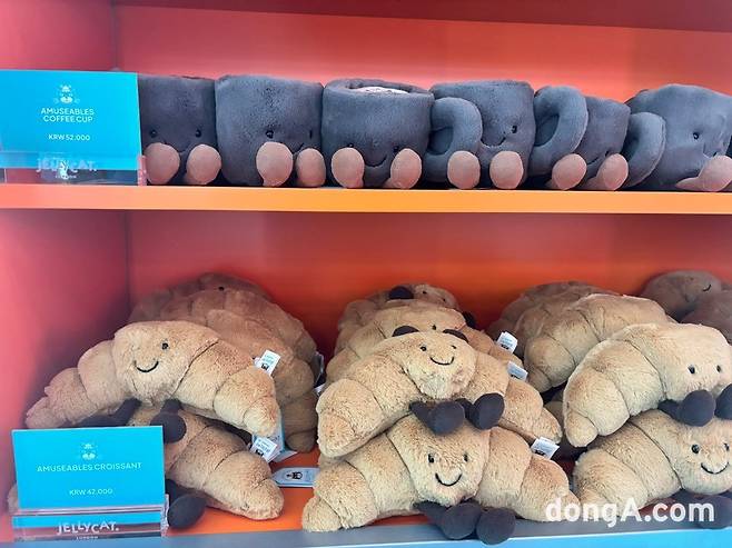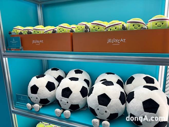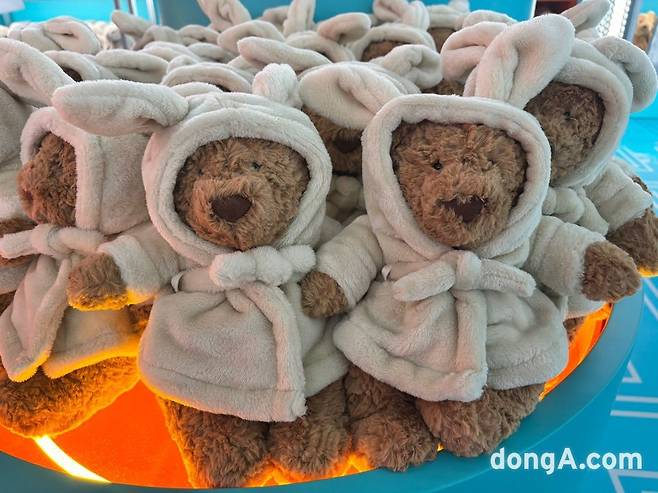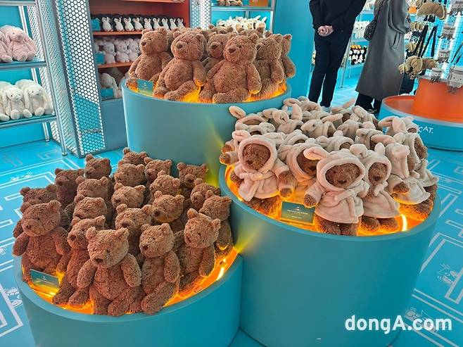 중앙 홀에는 대표 라인 ‘러버블스(Lovables)’, 사랑과 우정을 상징하는 토끼와 곰 시리즈가 전시돼 있고 유머러스한 감성을 담은 ‘어뮤저블스(Amuseables)’라인도 볼 수 있다. 가지와 아보카도, 크루아상, 피넛, 햇살 등 일상 사물을 인형으로 만든 것으로 이강인의 애착인형 키링도 여기서 구매할 수 있다.