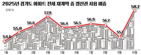 경기도 10월 전세 재계약 58.7%… 전세 품귀에 아파트 ‘갱신권’ 올해 최고