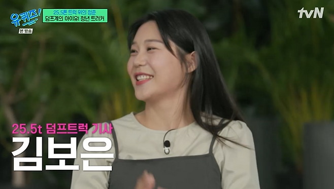 김보은은 5일 방송된 tvN 예능프로그램 ‘유 퀴즈 온 더 블럭’(이하 ‘유퀴즈’)에 출연해 “서른살 때부터 이 일을 시작해 벌써 5년째”라며 “덤프트럭은 건설 기계로 분류돼서 주로 흙을 싣고 다닌다”고 밝혔다.