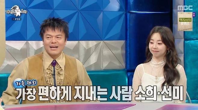 이를 듣던 박진영은 "오랜만에 소희와 밥을 먹는데 말이 멈추면 자꾸 질문하더라. 그게 너무 속이 상했다. 원래 그런 성향 아닌데, 생각해보니 너튜브 시작한 후로 사회생활을 하게 된거다. 그래서 밥 먹다가 '소희야 그냥 가만있어도 돼'라고 했다"고 밝혔다.