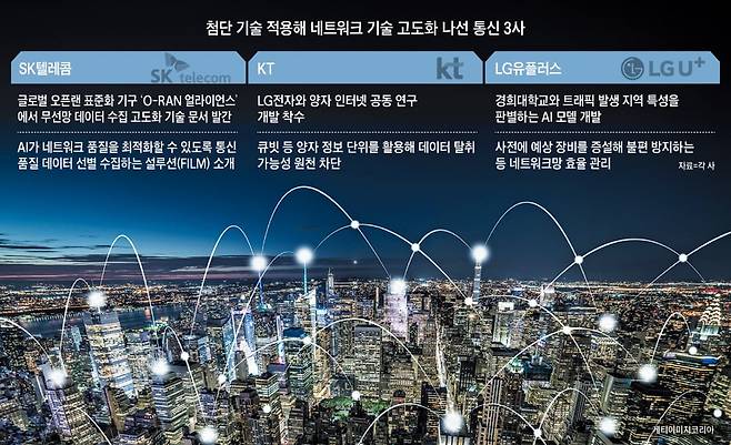 그동안 국내 통신사들은 더 빠른 통신 속도를 제공하는 경쟁을 벌여왔지만, 이제는 첨단 기술을 적용해 네트워크 품질을 향상시키는 경쟁에 나선 것이다. SK텔레콤·KT·LG유플러스 등 국내 통신 3사가 네트워크 고도화 경쟁에 돌입한 배경엔 인공지능(AI)·양자 기술 등 첨단 기술이 있다. 통신업계 관계자는 “단순히 속도 경쟁뿐 아니라 AI를 통해 보안 수준을 끌어올리거나 트래픽 데이터를 분석해 장비 투자가 더 필요한 지역을 찾아낼 수도 있게 됐다”면서 “통신 3사가 AI 모델, 통화 앱과 같은 새로운 AI 기술을 선보이면서 동시에 본업인 통신에도 첨단 기술을 접목시키며 기술 경쟁을 벌이고 있다”고 말했다.
