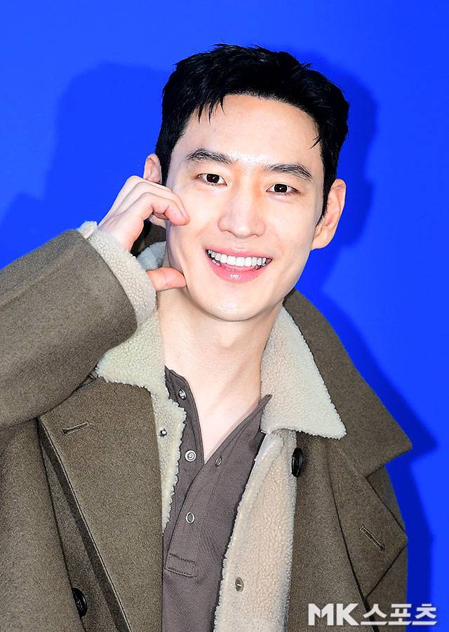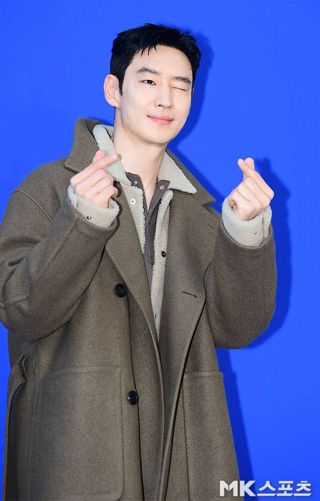 짙은 카키빛 코트에 양털 안감을 더한 따뜻한 가을룩으로 등장한 그는 특유의 부드러운 눈웃음과 윙크 포즈로 현장의 시선을 사로잡았다.