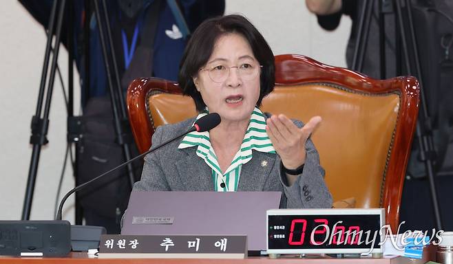 | ▲ 추미애 국회 법제사법위원장이 지난 10월 20일 국회 법제사법위원회에서 열린 서울고법 등에 대한 국정감사에서 발언권을 달라는 국민의힘 의원들과 설전을 벌이고 있다. |