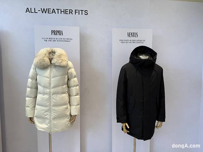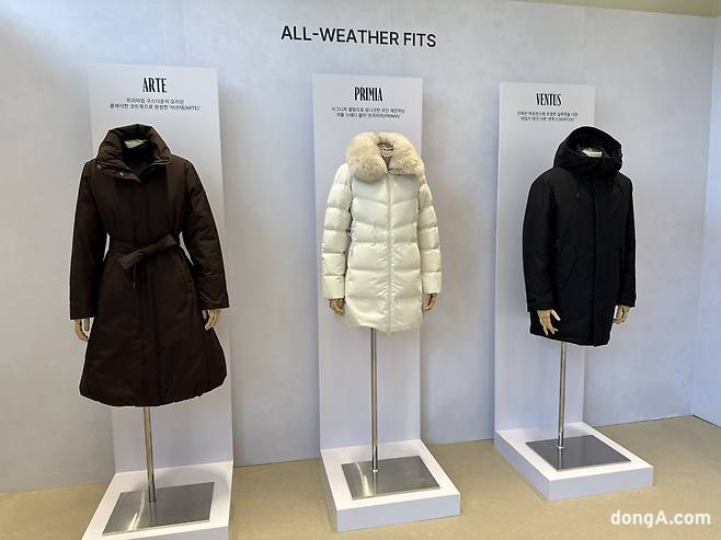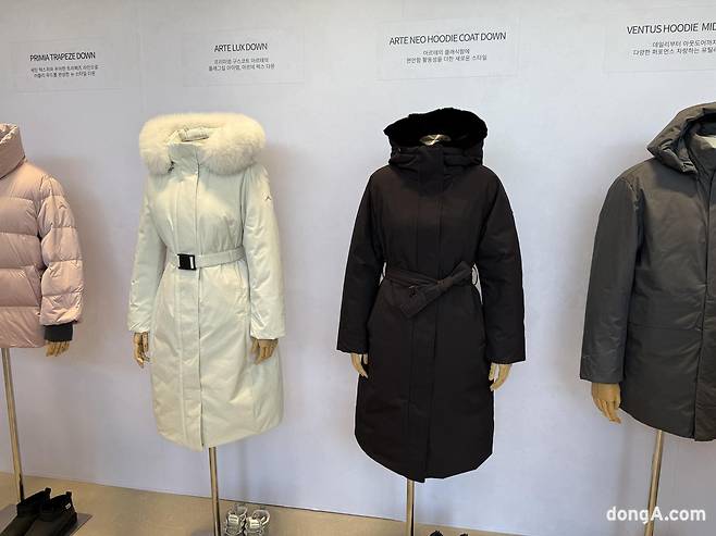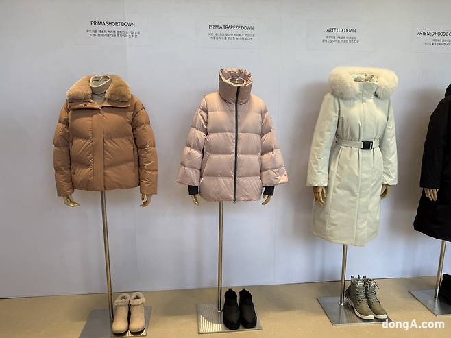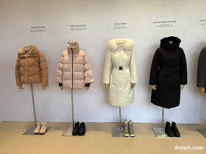 이번 25FW(가을·겨울) 컬렉션은 ‘아르테’, ‘프리미아’, ‘벤투스’ 등 대표 구스 다운 시리즈를 포함해 총 28가지 스타일이 출시됐다. 고어텍스, 메커니컬 스트레치(높은 신축성) 등의 첨단 소재로 보온성과 경량성, 방투습 기능을 극대화했으며, 다양한 디자인과 색상으로 도시와 자연에서 모두 어울리는 디자인으로 개발했다고 한다. 주요 제품은 3개 테마존으로 나누어 전시, 각 테마에 맞춘 전략적 제품 구성을 공개했다.