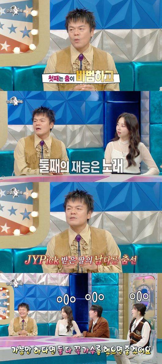 특히 박진영은 “가능만 하다면 둘 다 가수를 꼭 했으면 좋겠다”라는 바람을 전하기도 했다. 30년 동안 현역 가수이자 프로듀서로 활동 중인 만큼 두 딸이 자신과 같은 길을 걸었으면 하는 박진영의 마음이었다.