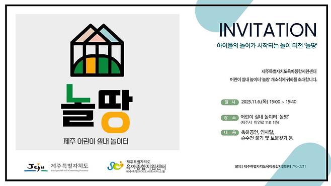 제주 공공형 어린이 실내놀이터 '놀땅'이 7일부터 정식으로 운영한다.