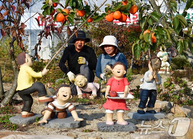 (포항=뉴스1) 최창호 기자 = 6일 오후 경북 포항시 북구 흥해읍 망천리 미소토우 겔러리 마당에서 정미소 작가 부부가 전시를 위한 토우 인형을 설치하고 있다.