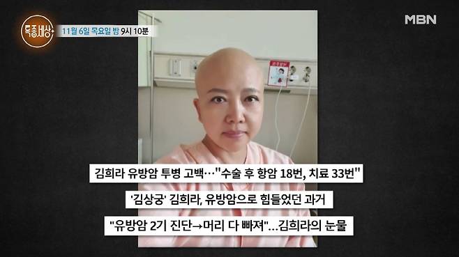 6일 MBN '특종세상' 측은 "유방암을 이겨낸 감초 배우 김희라"라는 제목의 선공개 영상을 공개했다.