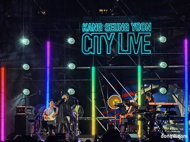 완벽한 라이브를 선보이며 관객들을 매료한 강승윤은 “오늘 큰 전광판과 함께 처음으로 시티 라이브를 선보이게 됐다. 여러분께 퇴근길 위로와 즐거움을 주기 위해 준비해봤다”고 웃으며 다음 무대를 이어나갔다.