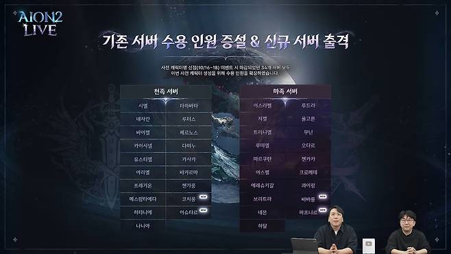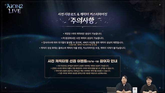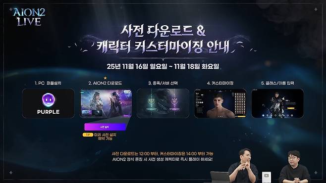 엔씨소프트는 6일 오후 8시 '아이온2' 특별 라이브 방송을 진행했다. 방송에는 소인섭 엔씨 아이온2 사업실장과 김남준 엔씨 아이온2 개발 PD가 마이크를 잡았다.
