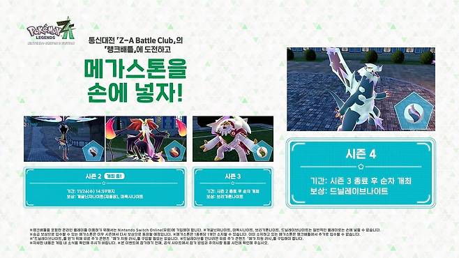 게임프리크가 '포켓몬 레전즈 Z-A'의 DLC '메가 차원 러시'를 12월 10일에 배포한다.