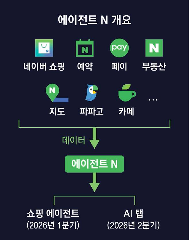 네이버는 에이전트 N을 기반으로 쇼핑에 특화된 ‘쇼핑 에이전트’를 내년 1분기(1∼3월)에, 모든 에이전트를 통합한 ‘AI탭’은 2분기(4∼6월)에 공개할 예정이다.