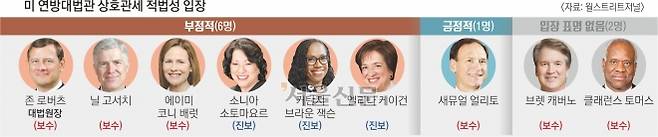 월스트리트저널(WSJ)이 이날 대법관 9명 중 6명이 상호관세에 부정적 입장을 보였다고 보도하는 등 보수 대법관들 사이에서 뚜렷한 분열이 감지됐다.