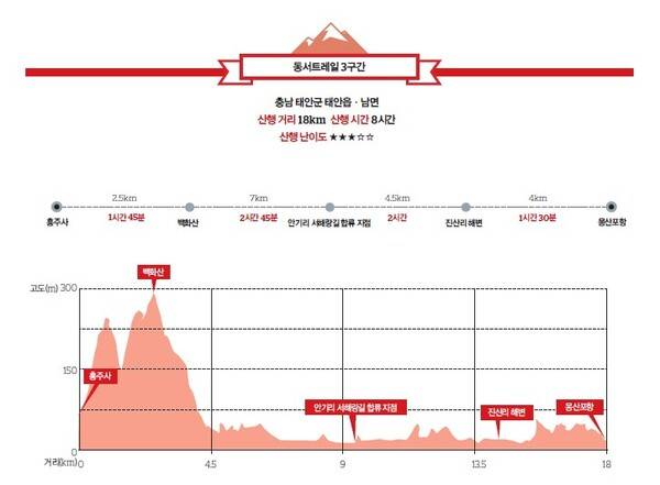 백화산 정상에서 태을암을 지날 때와 안기리에서 서해랑길과 합류할 때, 마지막 몽산포항 직전 마을길 이렇게 3곳만 주의를 기울이면 헷갈릴 일 없이 이정표가 잘 돼 있다. 태을암으로 가는 기존 등산로는 그대로 절로 이어지는데, 동서트레일은 중간에 도로 쪽으로 빠져서 절 위를 지나가듯 이어진다.