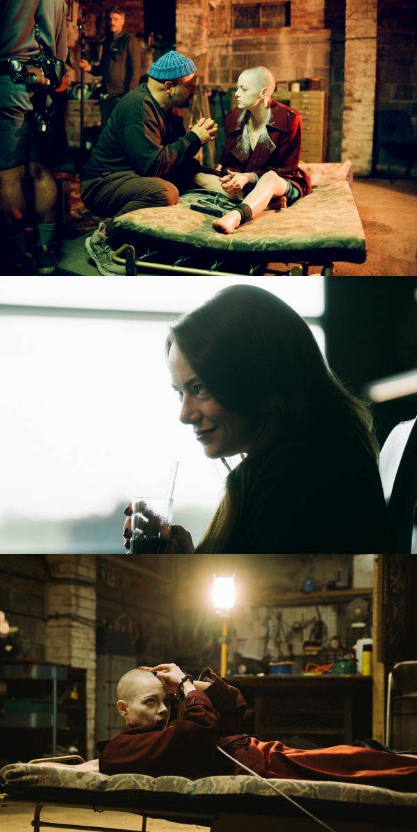 공개된 스틸에서 가장 눈길을 끈 인물은 단연 엠마 스톤이다. 외계인으로 오해받는 CEO '미셸'을 연기하기 위해 삭발을 감행한 그는, 배우이자 제작자로서 작품에 몰입하는 모습으로 강렬한 인상을 남긴다. 특히 지하실 세트 매트리스 위에서 제시 플레먼스, 요르고스 란티모스 감독과 함께 연기와 장면에 대해 깊이 논의하는 모습은 완성도 높은 작품의 탄생을 예감케 한다.