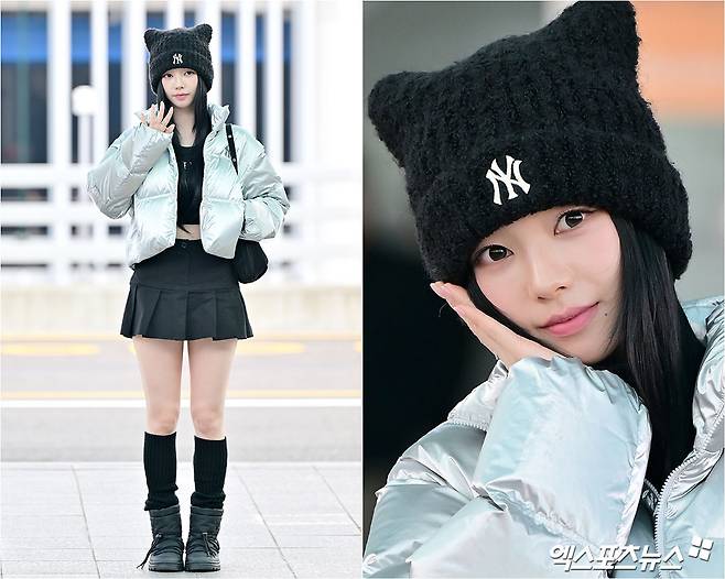 에스파 카리나가 해외일정 차 7일 오전 인천국제공항을 통해 일본으로 출국했다. 이날 카리나는 실버 톤의 크롭 패딩에 블랙 미니스커트, 롱삭스와 패딩 슈즈를 매치해 특유의 세련된 분위기를 자아냈다. 여기에 귀여운 니트 비니를 포인트로 더해 사랑스러운 매력을 완성했다.