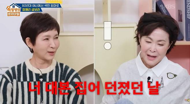 이어 정애리는 금보라와의 첫 만남을 떠올리며 "금보라가 대본을 집어던졌던 날이다"라고 밝혀 이목을 끌었다.