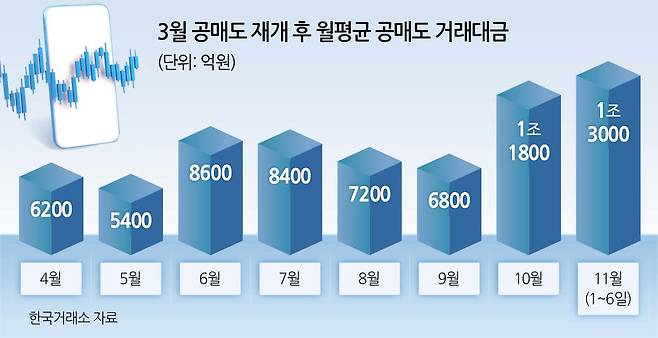 지난 5일 코스피·코스닥 전체 공매도 거래대금은 1조9072억원으로 2023년 7월 이후 2년 3개월 만의 최대치를 기록한 데 이어 대규모 공매도 거래가 이어진 것이다.