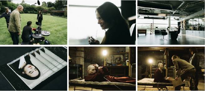 지난 5일 국내 개봉한 ‘부고니아’가 촬영장의 열기를 엿볼 수 있는 현장 비하인드 스틸을 공개해 작품에 대한 흥미를 더욱 불러일으킨다. 먼저, 외계인으로 의심받아 납치되는 CEO 미셸을 완성하기 위해 과감히 삭발을 감행한 엠마 스톤. 그가 높은 집중력과 에너지로 작품에 임하고 있는 모습을 포착한 스틸은 배우이자 제작자로서의 열정을 고스란히 드러낸다. 특히 지하실 세트 매트리스에서 요르고스 란티모스 감독, 제시 플레먼스와 심도 있는 대화를 나누는 모습에서는 진지하면서도 편안한 현장 분위기가 전해져, 완성도 높은 작품의 탄생을 예감케 한다.