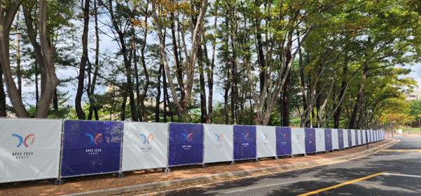 이번 설치는 행사 기간 중 인원 통제와 보안 강화를 위한 조치로, 행사장 주변 주요 호텔 10곳과 진입로 등에 집중됐다. 안전펜스는 모듈형 구조로 설계돼 설치와 해체가 신속하게 이뤄질 수 있도록 구성됐다.
