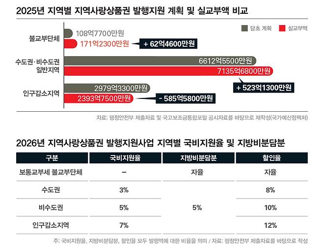 국회 예산정책처가 발표한 이재명 정부 2026년도 예산안 분석 보고서에 따르면, 올해 지역화폐 사업에서 정부가 지역별로 편성한 지원금과 실교부액 간 차이는 수백억원에 달했다. 지원 대상 지역의 유형은 불(不)교부단체, 일반지역(수도권·비수도권 포함), 인구감소지역 등 세 가지다. 앞서 정부는 지난 2차 추경 당시 재정자립도가 높아 그간 국비를 보조하지 않았던 단체도 지원 대상에 포함시켰다.