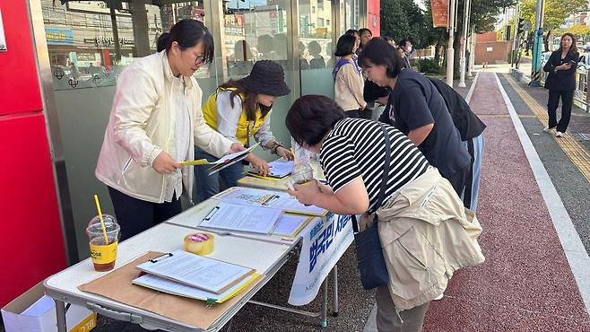 | ▲ 서명운동 시민들이 홈플러스 살리기 서명운동에 참여하고 있다 |