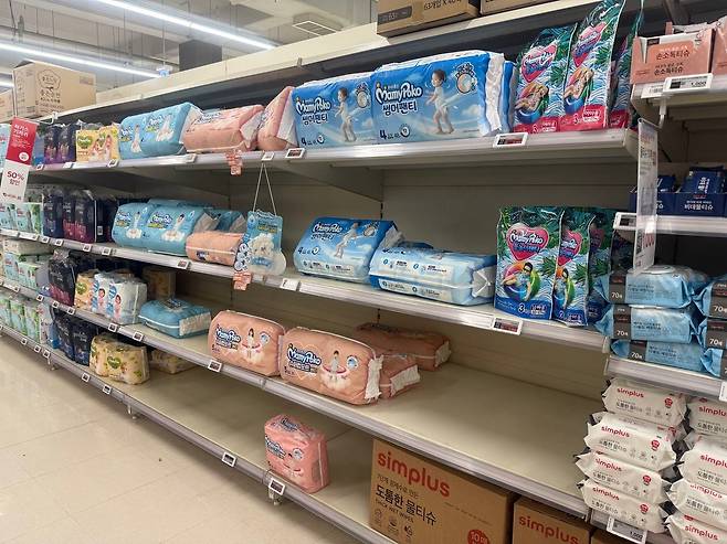 | ▲ 매장 전경 재고가 없어 상품 매대가 텅 비어있다 |